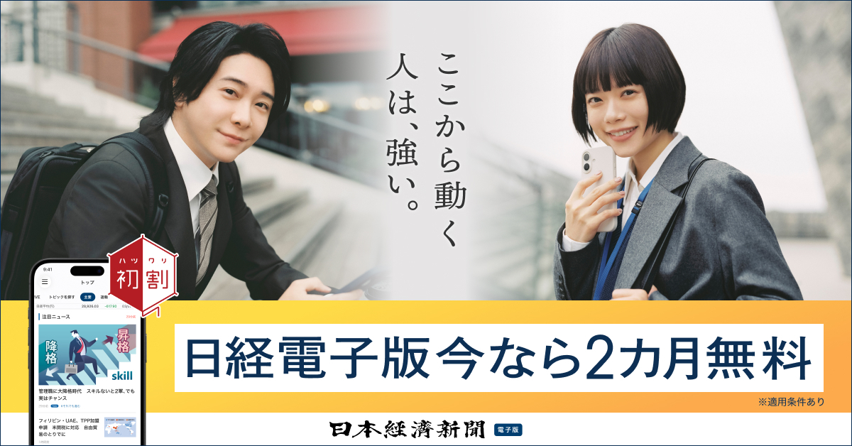 日経電子版 初割 2カ月無料で体験する|日本経済新聞のニュース・専門情報